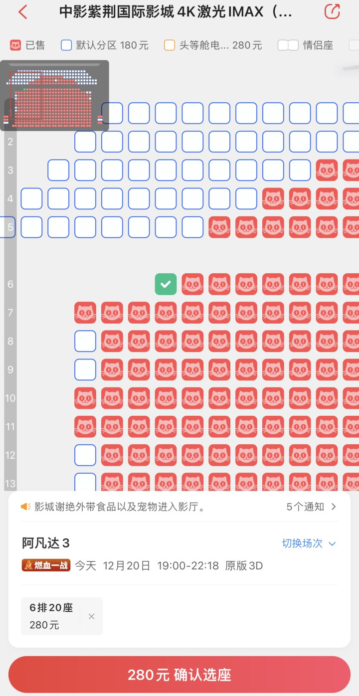 此外,《阿凡达3》殊效厅的高票价也激励热议。红星新闻记者从各大售票平台看到,《阿凡达3》票价从十几元到上百元不等,成齐最高票价达到了280元,其中,廉价票为影城推出的活动,座位数目有限。IMAX、CINITY等殊效厅的票价相对较高,平庸影厅的票价基本在百元以下。