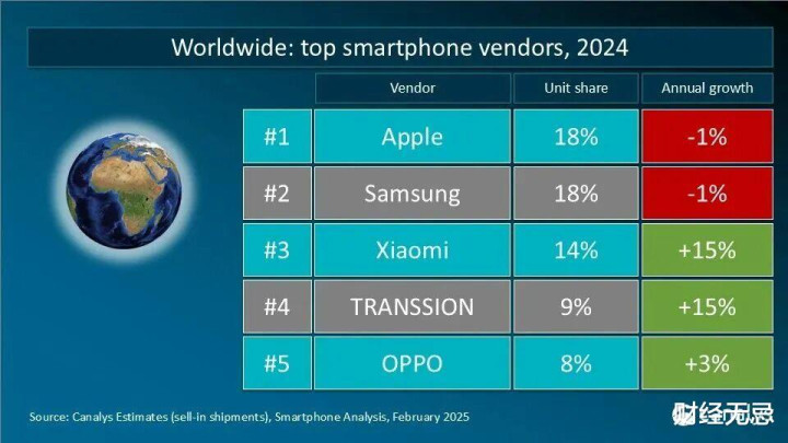 Canalys数据骄矜(2024年),OPPO品牌全球市集份额较上一年下落一位,跌至第五,距离非头部阵营仅一步之遥。