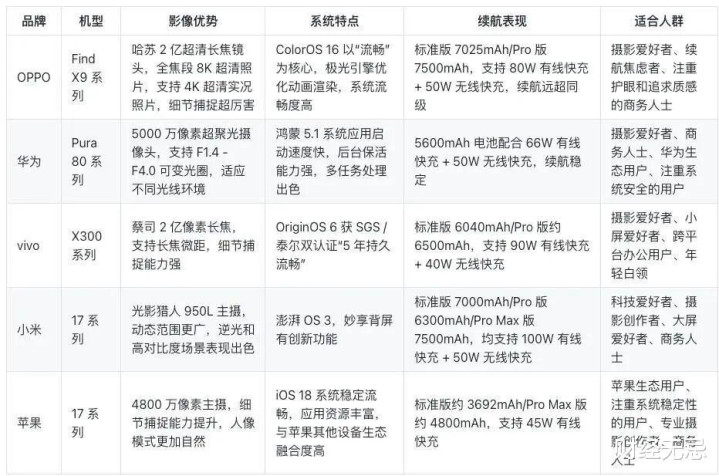 横向对比2025年高端旗舰机型(华为Pura 80系列、vivo X300系列、小米17系列、苹果17系列),OPPO Find X9系列搭载的哈苏2亿超长焦镜头、全焦段8K超清拍摄功能,在影像硬件参数上照实具备上风。