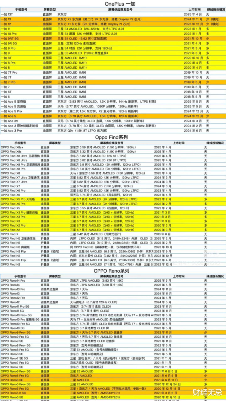 绿线门爆发后,OPPO在发布会上官宣“屏幕翻新”,告示谐和面板厂商插足超10亿元自研屏幕产线,以处罚后续产物的屏幕质料问题。但短期内仍难懂脱对三星的依赖——Find X9系列仍接纳三星E7材质,导致高端机型品控风险持续。