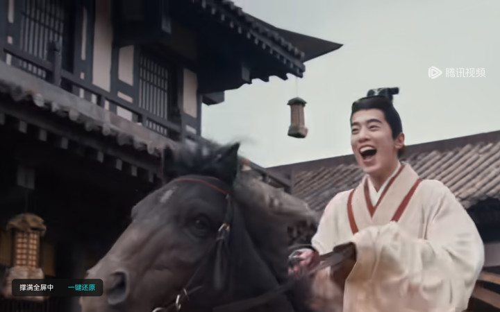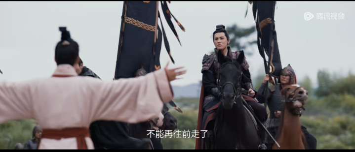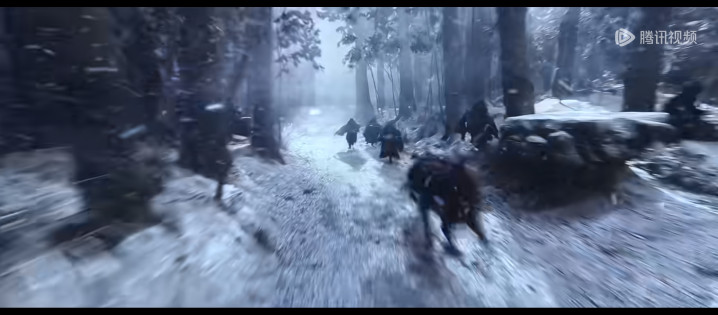 毕之(高伟光饰)正在林间策马飞驰。死后不远方,一群黑衣东说念主如鬼怪般飞身追击。