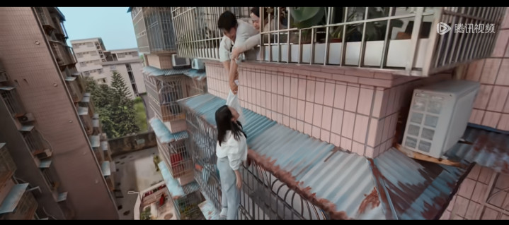 苏北陆马上冲上楼去,和女子的母亲整个抢救女子,无奈女子力气不及,眼看就要掉下楼去。