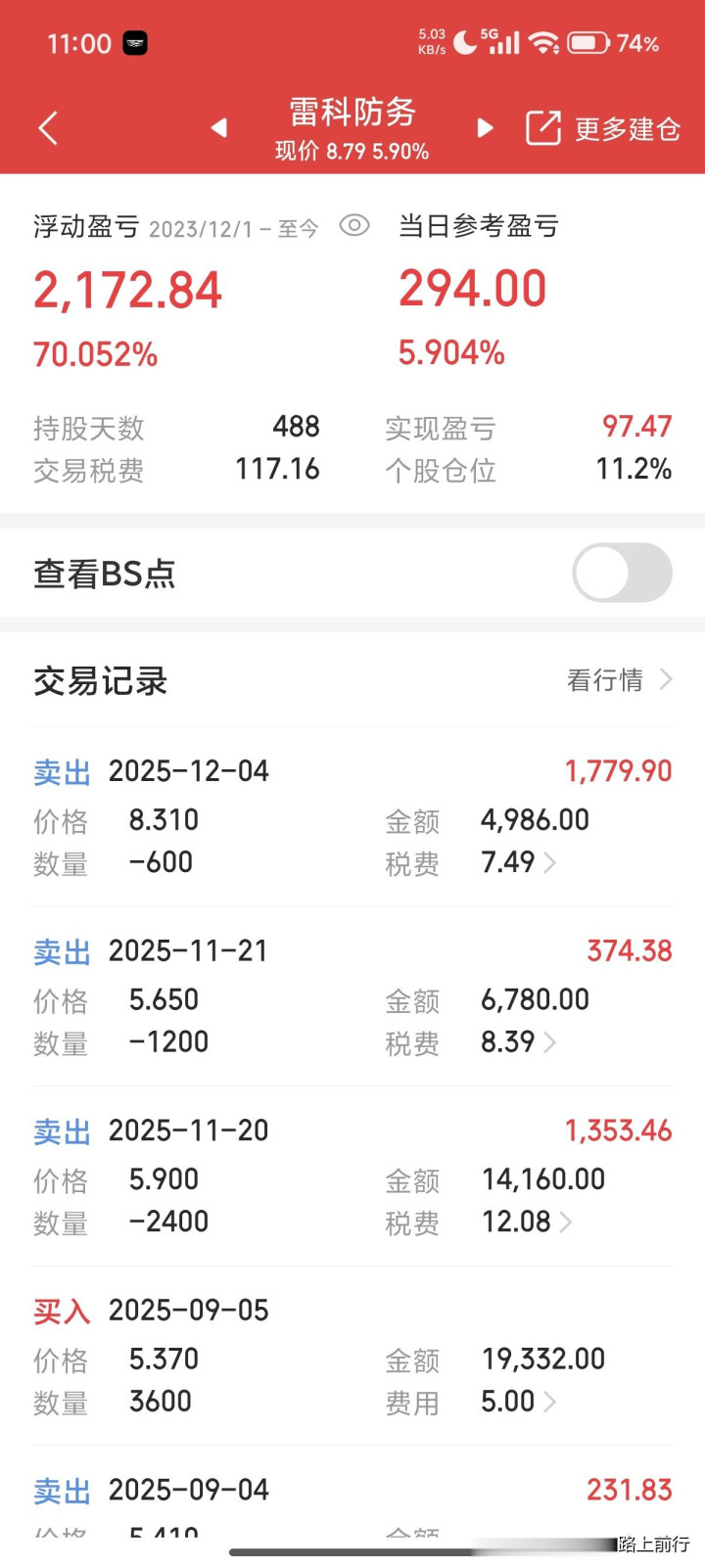 还好手里还有底仓。又在5个涨停后跌10%卖出600股。刻下手里还剩600股。