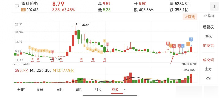 季线:大阴线战法,看下图箭头指的大阴线,-27%(主力建仓区),站稳阴线顶(含分时),可入,回踩,可加仓。你我方去看日线这个价位,拿到刻下40%多。