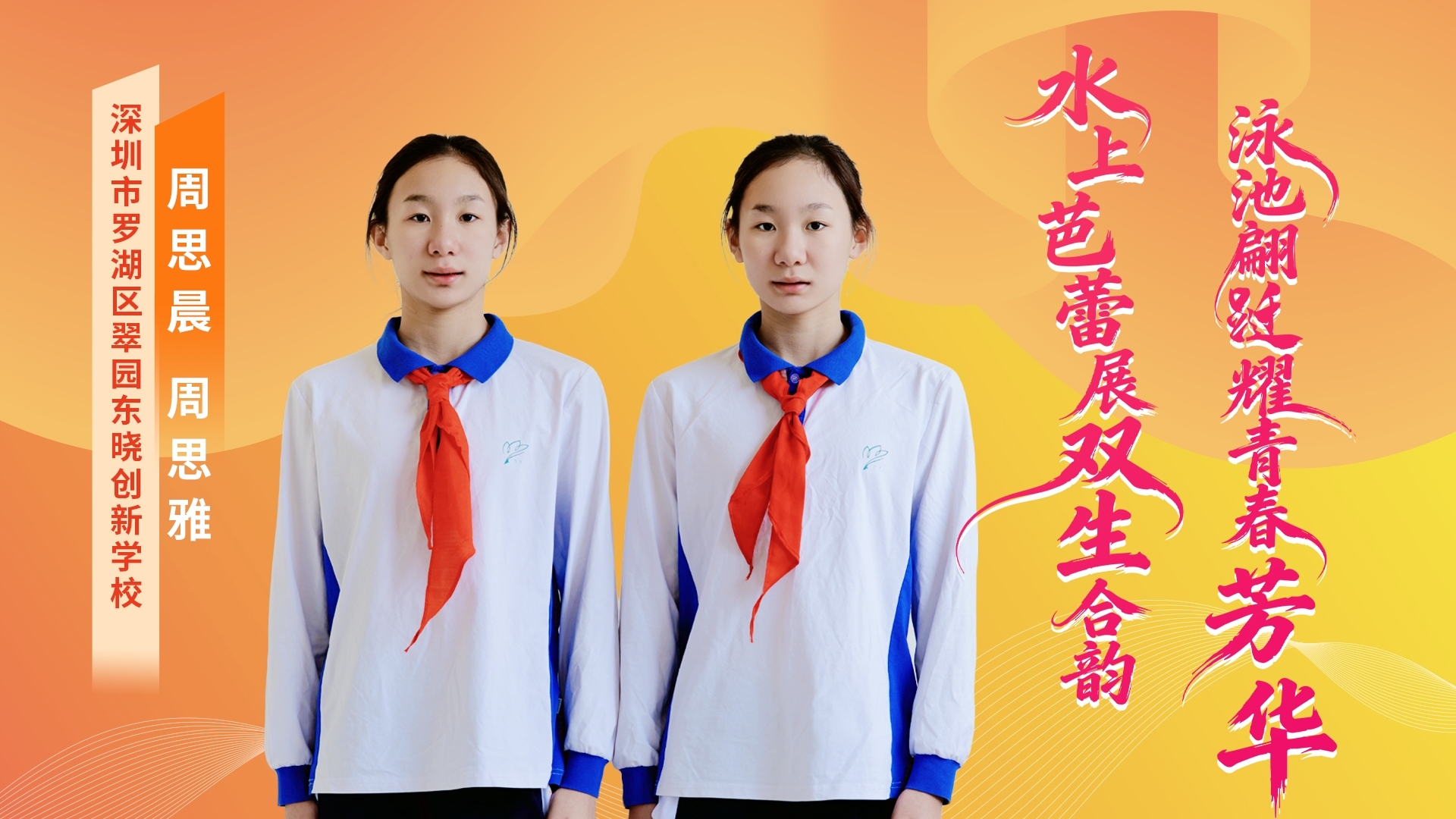 周想晨、周想雅,广东省项目游水少年引导员。姐妹俩自六岁讲和项目游水后赶快成长,七岁时即荣获世界项目游水少儿U系列比赛8岁及以下组双东谈主目田自选冠军,尔后在国内各级别赛事中屡获佳绩。她们防碍自律,在坚握高强度进修与比赛的同期,遥远保握邃密学业水平。积极参与校园举止与少先队职责,于2024年当选广东省第八次少代会代表,并看成优秀少先队员代表受到省委主圭臬导接见,入选2025年广东“新时间好少年”。